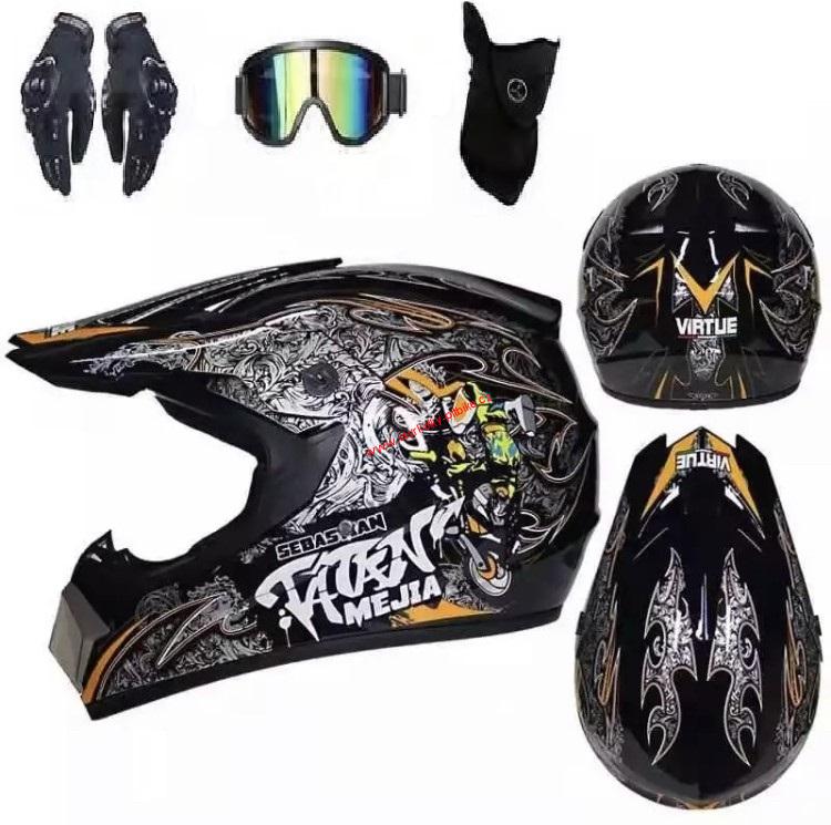 Dětská moto helma Tatan SET s brýlemi rukavicemi a nákrčníkem