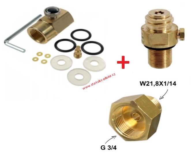 Sada obsahuje: plnící ventil na láhve CO2, ventil na CO2 bez pojistky a redukci z G3/4 na W21,8.